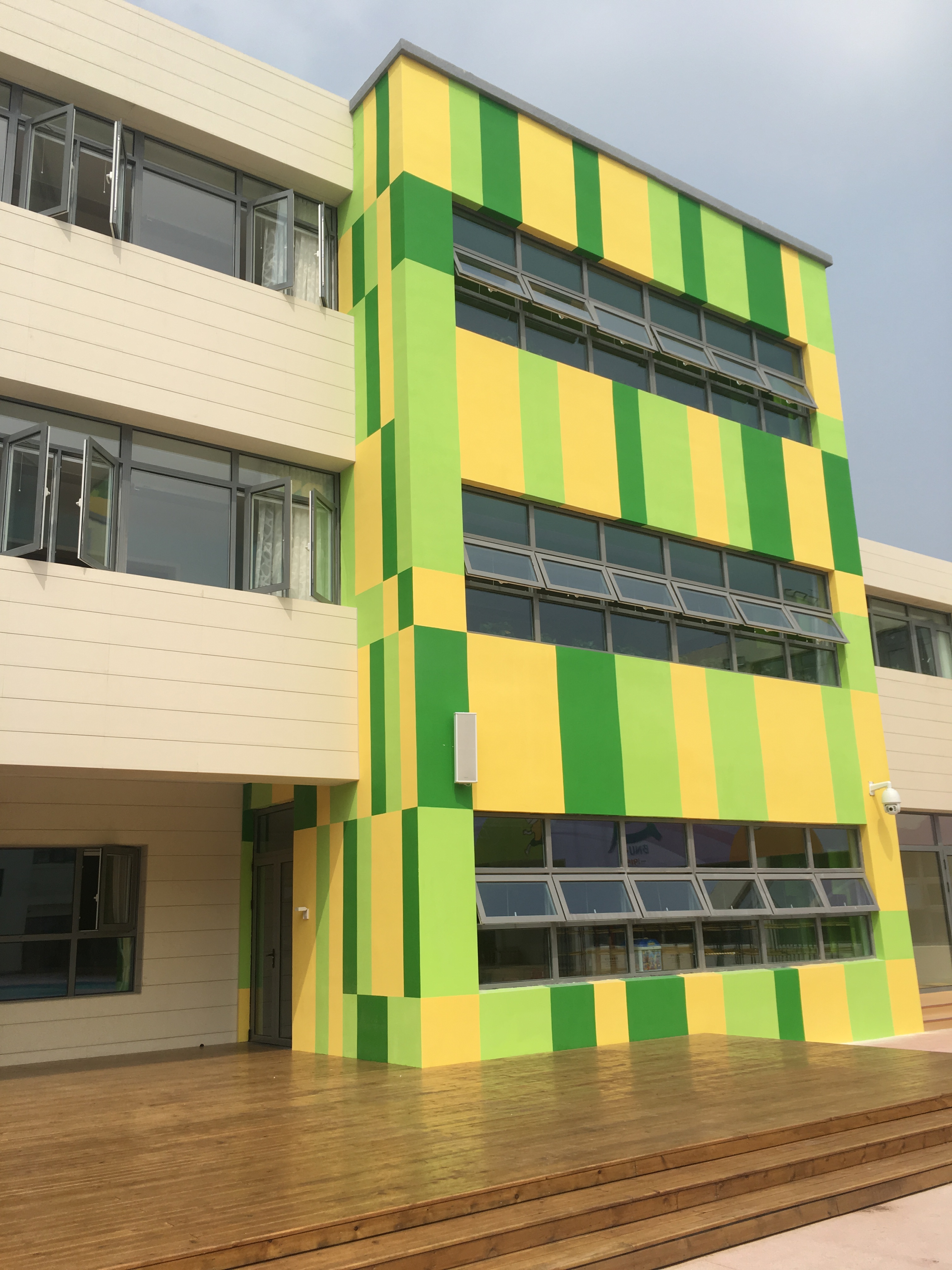 北京師范大學實驗幼兒園中每個教室和走廊采用了有源吸頂揚聲器平均分布的安裝方式,負責全場區域的聲音覆蓋,吸頂揚聲器可以很好的對聽音區實現覆蓋,通過處理器內均衡、延時、壓限等功能的設置,可以將聲場調試至最佳狀態,使音箱的頻響達到極佳的效果。通過調試,室外防水音柱均勻的覆蓋全場,聲壓級、均勻度等指標均能達到標準。