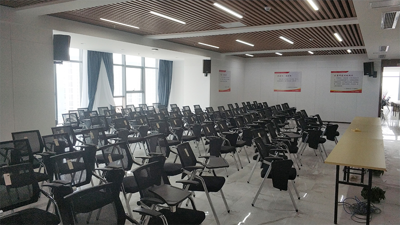 專業擴聲系統簡單來說就是把聲音信號放大,主要由聲源、音頻處理設備、功放及揚聲器系統組成。通過計算會議室的音響場地系數進行設計,保證會議室每個角落的聲場聽覺均勻,音響效果達到語言清晰、無失真、聲場分布均勻。