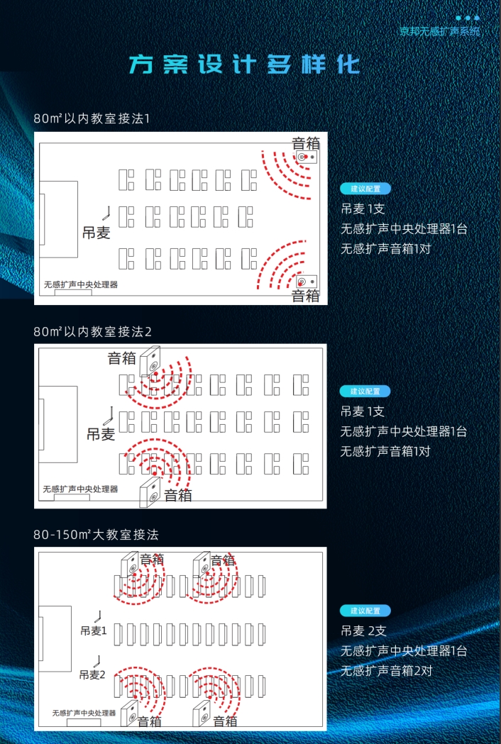 京邦無(wú)感擴(kuò)聲系統(tǒng)作為新一代無(wú)感擴(kuò)聲解決方案,內(nèi)置多種智能音頻算法,支持嘯叫抑制,混響抑制,智能降噪及自動(dòng)增益控制 ,同時(shí)實(shí)現(xiàn)語(yǔ)音增強(qiáng),在嘈雜環(huán)境下也可以實(shí)現(xiàn)智能無(wú)感高保真拾音與擴(kuò)聲。